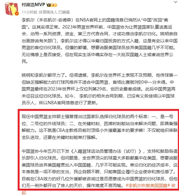 不是李凯尔不好,而是中国男篮一直以来缺少优秀控场球员的毛病,注定了更加适合归化能够大包大揽的持球核心类型球员。